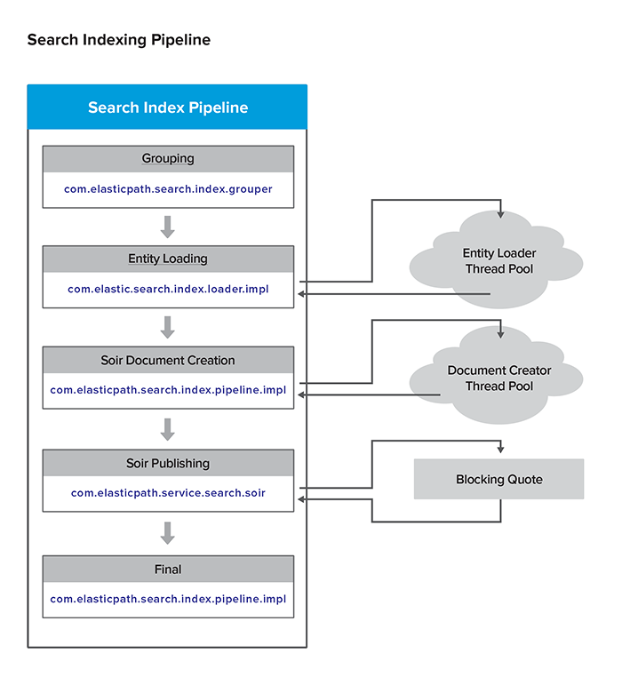 You can tune the index pipelines to fit your Elastic Path implementation by changing the properties for the following, beans, java files, and tasks. See the following sections for information on:
