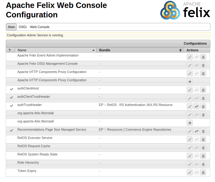 - Disabled: The component’s has been manually disabled in the Apache Felix Console