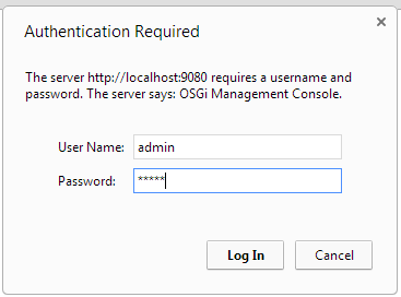 org.apache.felix.webconsole.internal.servlet.OsgiManager.configand insert the following properties:username="Your_Username" password="Your_Password"Where