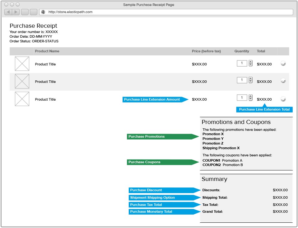 The following is an example of a purchase receipt page that demonstrates how these resources could be used in a client application: